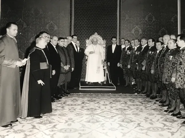 Ricordo che in una splendida sala dell’appartamento ufficiale alla seconda loggia c’erano diversi gruppetti di persone che, come noi attendevano di essere ricevuti dal Pontefice. Io molto emozionata, indossavo l’abito bianco della Comunione, mia mamma e mia nonna avevano abiti rigorosamente neri e velo in testa e mio padre con la divisa ufficiale rosso scarlatto.