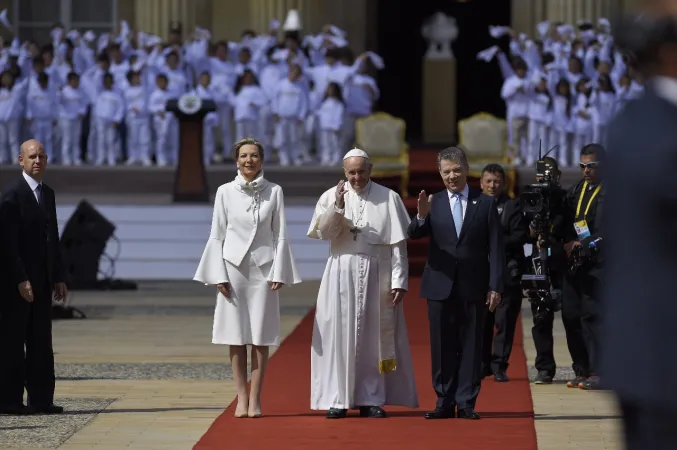 L’incontro si è svolto prima di quello privato con il presidente e nel palazzo di inizio ‘900 chiamato “Casa de Nariño” in onore di Antonio Nariño, politico colombiano vissuto tra il ‘700 e l’800 militante per l’indipendenza del Paese che ha tradotto in spagnolo e pubblicato la Dichiarazione dei diritti dell’uomo e del Cittadino della Rivoluzione francese. È la residenza ufficiale del Presidente della Colombia e la sede del governo. Il Palazzo, sito nel centro storico di Bogotá, è ricco di opere d’arte legate alla storia del Paese. Il Presidente. Juan Manuel Santos Calderón, classe1951, appartiene alla famiglia dei “Santos”, una delle dinastie più influenti del Paese. Nel 2016 ha ricevuto il Nobel per la Pace. Nel suo saluto al Papa Santos si è definto "uno dei tanti toccato dalle sue parole e dal sue esempio". Poi ha ricordato il cammino per la pace: "vogliamo riconciliarci e accettare l'altro".