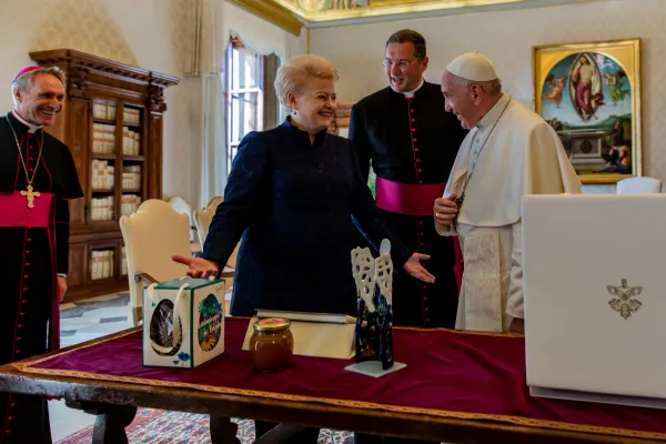 Per il consueto scambio di doni, il Primo Ministro lituano ha donato a Francesco una statuetta in legno di quercia che rappresenta un Gesù preoccupato e pensante, simbolo della Lituania. L’opera è diffusa in tutto il paese e realizzata da un’artista lituano “autodidatta”. Da parte sua invece il Papa ha regalato al ministro il medaglione della pace e i suoi tre libri: “Evangelii Gaudium”, “Laudato Sì” e l’esortazione apostolica “Amoris Laetitia”.