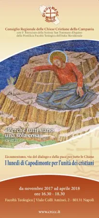 Prendono il via a Capodimonte “i lunedì per l’unità dei cristiani”. Alla Facoltà Teologica di Napoli un ciclo d’incontri ecumenici a 3 voci: cattolici, ortodossi e protestanti, insieme per l’unità e la pace. Inizieranno lunedì 13 novembre 2017, a partire dalle ore 16.30, presso la Sezione San Tommaso d’Aquino della Pontificia Facoltà Teologica dell’Italia Meridionale.
