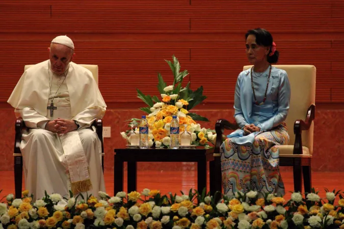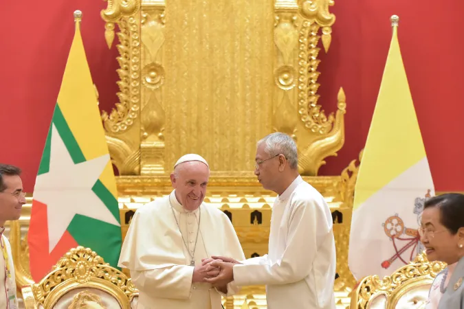 Papa Francesco si appella, in pratica, alla presenza del Myanmar nel concerto delle nazioni, cosa che testimonia “l’impegno del Paese a mantenere e osservare questi principi fondamentali”, perché “il futuro del Myanmar deve essere la pace. Una pace fondata sul rispetto della dignità e dei diritti di ogni membro della società, sul rispetto di ogni gruppo etnico e della sua identità, sul rispetto dello Stato di diritto e di un ordine democratico che consenta a ciascun individuo e ad ogni gruppo – nessuno escluso – di offrire il suo legittimo contributo al bene comune”.