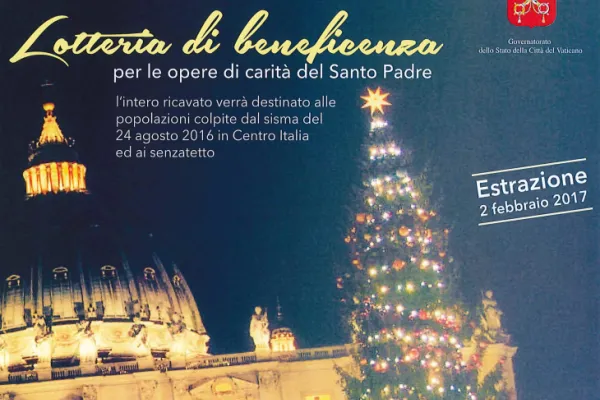 Anche quest’anno viene riproposta l’iniziativa di solidarietà “Lotteria di beneficenza per le opere di carità del Santo Padre”, giunta alla V edizione. L’iniziativa, informa un comunicato del Governatorato dello Stato della Città del Vaticano, con le Festività natalizie, “periodo particolarmente propizio per un gesto di solidarietà e di condivisione”.