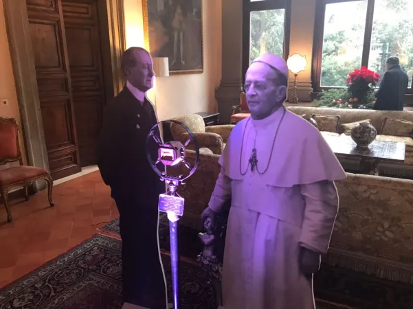 Vederli li’ insieme a Palazzo Borromeo davanti ad un microfono dava un certo effetto. Le sagome di cartone di Guglielmo Marconi e Papa Pio XI con il mitico microfono dei primi radio messaggi sono in effetti una parte del museo della Radio vaticana che custodisce tesori della storia della comunicazione in Vaticano. Il Museo per ora è chiuso per lavori, ma chi ha partecipato al convegno “ Interferenze” promosso dalla SPC e dall’ Ambasciata d’ Italia presso la Santa Sede ha avuto la opportunità speciale di vedere almeno due piccoli gioielli: un registratore a filo e una delle prime telescriventi.