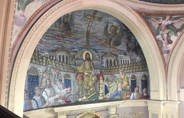 Chi visita oggi la chiesa di Santa Pudenziana deve scendere due rampe di scale perché ormai si trova molto sotto il livello stradale. Quando la vede Pompeo Ugonio nel 1588 la situazione era totalmente diversa: