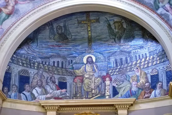 “E’ la chiesa di santa Pudentiana rincontro quasi a quella di S. Maria Maggiore, & era prima rilevata in alto dalla strada circa 10 gradi. Ma hor’appunto essendosi la strada alzata da questa parte per il spianar che ha fatto N. Sig. Sisto V del Monte di S. Maria Maggiore, è venuta questa chiesa ancora a essere al medesimo piano.”