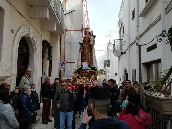 A questa si è aggiunta la grave situazione che vede coinvolta l’Ucraina invasa dalla Russia. Ci rivolgiamo a Maria - dice il Consiglio - chiedendo la fine dell’emergenza sanitaria e la pacifica risoluzione del conflitto tra Ucraina e Russia”. L’Ottava di Pasqua, inoltre, è l’ultimo atto della Settimana Santa, quasi un ringraziamento per i benefici spirituali della settimana appena trascorsa, culminata con la Processione dei Sacri Misteri del Sabato Santo. Al mattino presto la venerata immagine della Madonna del Carmine è partita dalla Chiesa del Carmine per far tappa al Santuario. Particolarità del pellegrinaggio è che i Confratelli e le Consorelle non avevano gli abiti di rito e chiunque ha potuto portare a spalla il simulacro. Il corteo, scandito dalla recita della coroncina della Divina Misericordia e da canti mariani, ha proceduto per le vie del paese e successivamente per le vie dell’agro mottolese, accompagnata dai fedeli accorsi numerosi per l’occasione.