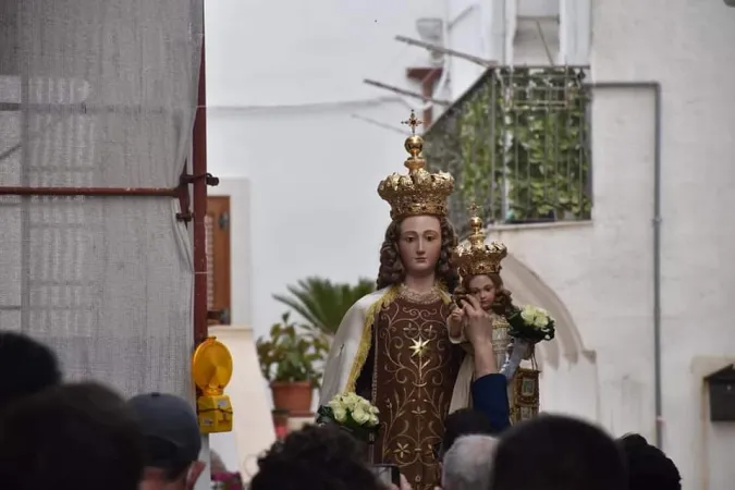 La devozione dei mottolesi per la Madonna del Carmine trova origine nei primi anni del Cinquecento: il 22 Aprile 1506 la Madonna è apparsa al Chierico Francesco Pietro di Filippo, che riposava in quel luogo. La richiesta fu quella di edificare lì una cappella in suo onore. Con il tempo, la Madonn Abbasc è diventata luogo di pellegrinaggi per chiedere grazie, guarigioni e anche la pioggia durante i periodi di secchezza dei campi. Novità di quest’anno è la traslazione a piedi del simulacro. Come detto da alcuni membri del Consiglio, ”questa idea era già nata durante la fase acuta della pandemia per chiedere la grazia della fine del virus.