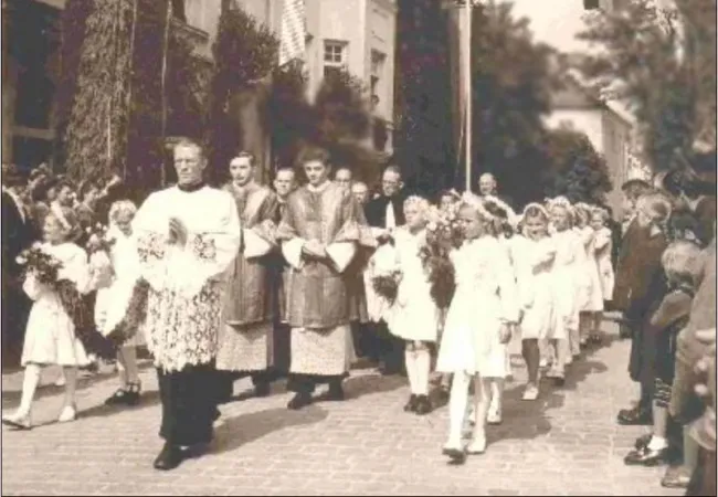 Il giorno della nostra ordinazione sacerdotale il 29 giugno 1951, molto presto tutta Hufschlag stava aspettando la partenza dei miei genitori e di mia sorella. Dovevano essere circa le 4 del mattino. Quando il taxi con loro tre è scomparso, Hufschlag si è precipitato sulla nostra casa, che hanno splendidamente decorato per accoglierci. Quando siamo arrivati intorno alle 9 di sera, era difficilmente riconoscibile. Papà l’aveva fatta ridipingere e aveva rinnovato l'ingresso. Al mattino presto, gli abitanti di Hufschlag avevano eretto un arco trionfale all'ingresso del giardino e adornato meravigliosamente di verde l'intera casa. Quando poi siamo entrati la sera, si è scoperto che anche tutto all'interno era stato rinnovato. La sarta di nostra madre e un'amica ci stavano aspettando e ci avevano preparato una cena meravigliosa.