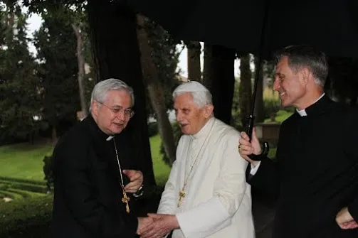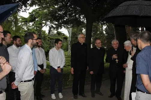 L’incontro - cui era presente anche il rettore del seminario - è avvenuto nei Giardini Vaticani, intorno alle 19 della sera di martedì, al termine della recita del Rosario durante la consueta passeggiata serale del Papa emerito. Piovigginava, e l’incontro è durato circa 15 minuti. Poi il Papa emerito ha fatto ritorno al Monastero Mater Ecclesiae a bordo di una macchina elettrica della Gendarmeria.