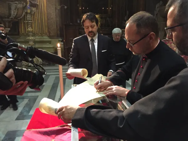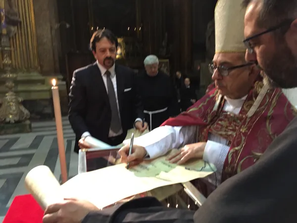 Una cerimonia commovente, solenne e ufficiale. A guidarla il vescovo ausiliare di Roma Centro Ruzza, che ha formato con studiosi e insieme al parroco e Fra Marco Tasca, ministro generale dei Minori Conventuali che dal 1400 officiano la basilica.