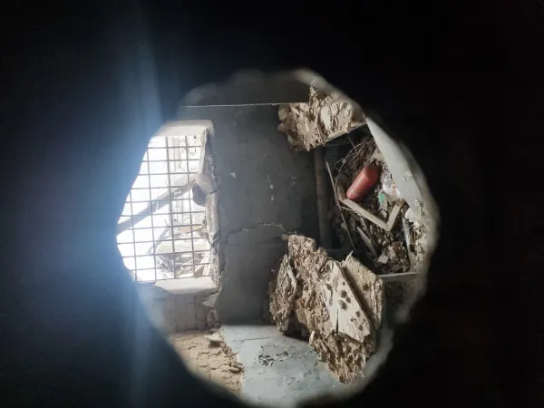 Anche l’ospedale è stato danneggiato dalle bombe, lì dove c’era il reparto di chirurgia. Ora funziona a metà, non accoglie più bambini, ha una settantina di pazienti.