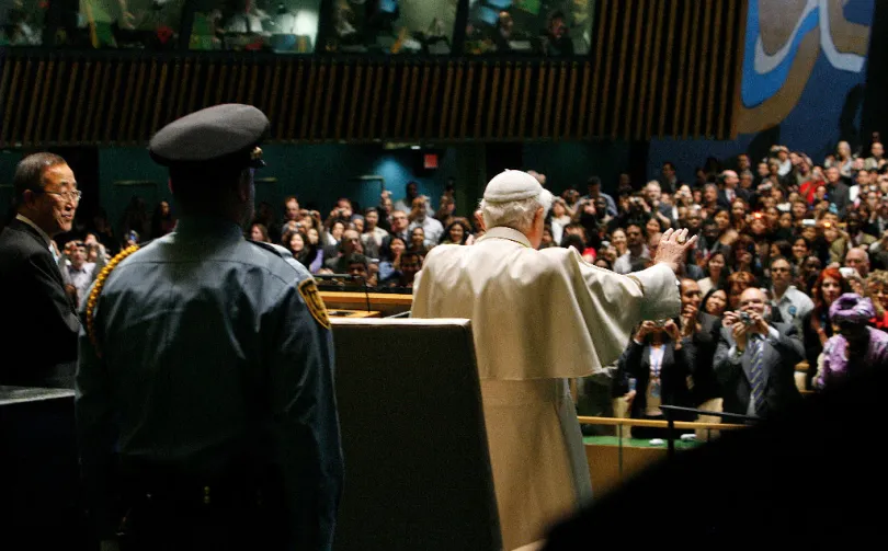 Visitando le Nazioni Unite nel 2008, Benedetto XVI – che avrebbe poi messo nero su bianco l’idea di una riforma delle Nazioni Unite nella Caritas in Veritate – mise in luce che “ciò di cui vi è bisogno e una ricerca più profonda di modi di prevenire e controllare i conflitti, esplorando ogni possibile via diplomatica e prestando attenzione ed incoraggiamento anche ai più flebili segni di dialogo o di desiderio di riconciliazione”.
