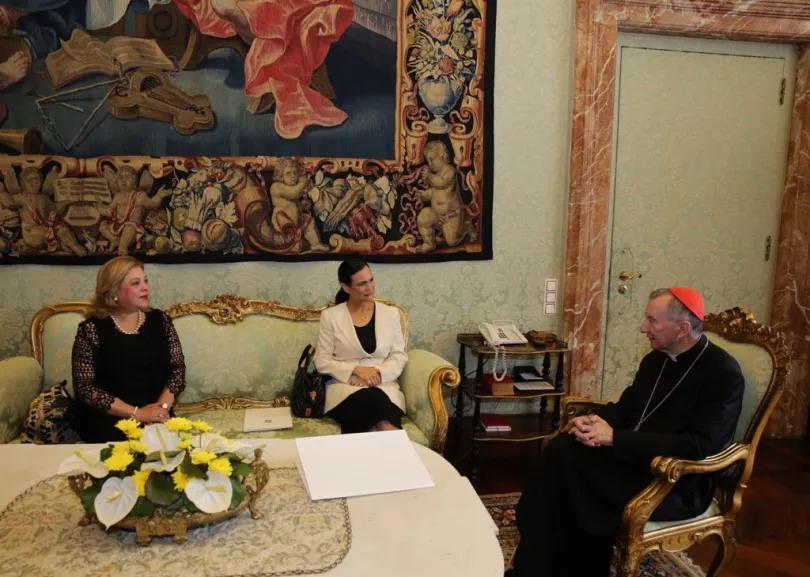 Il ministro Holguin ha anche incontrato in Vaticano l’arcivescovo Paul Richard Gallagher, Segretario per i Rapporti con gli Stati. Durante l’incontro si è parlato dell’impegno della Chiesa cattolica nel processo di pace in Colombia. L’accordo di pace, firmato il 26 settembre 2016, ebbe l’importante appoggio della Santa Sede, e il Cardinale Pietro Parolin, Segretario di Stato vaticano, fu presente.