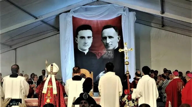 La celebrazione eucaristica, alla presenza di autorità religiose e civili e molti fedeli, provenienti anche da Schondorf, cittadina della Baviera dove è sepolto il comandante nazista della strage, Joachim Peiper, è stata presieduta dal card. Marcello Semeraro, prefetto del Dicastero delle Cause dei Santi, che nell’omelia ha affermato: “Potremo, dunque, considerare in questa prospettiva intercessoria il ministero sacerdotale e il martirio dei nostri due beati. Di don Giuseppe Bernardi una testimone ha dichiarato: ‘Non è fuggito per amore del suo gregge, per difendere la popolazione. Don Giuseppe era buono e generoso; è stato il buon pastore che dà la vita per le pecore’. Così pure, di don Mario Ghibaudo che fu ucciso proprio mentre esercitava il proprio ministero sacerdotale amministrando l’assoluzione a una persona morente, una teste ha affermato: ‘Era il sacerdote che svolgeva il suo ministero; stava aiutando la gente a mettersi in salvo e nel frattempo assolveva e benediceva’. E’ così che i nostri due beati hanno innalzato, come Mosè, le loro mani verso il cielo, intercedendo presso Dio”.