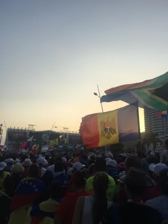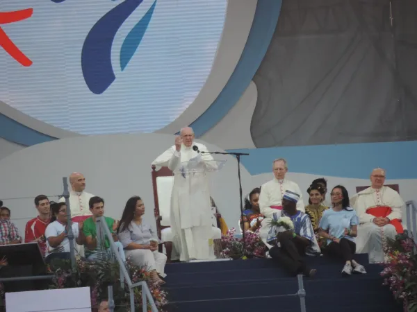 Dopo l’incontro con il corpo diplomatico, il faccia a faccia con i vescovi dell’America Centrale e dopo aver rivolto il pensiero al Venezuela appoggiando tutti gli sforzi che permettano di risparmiare ulteriore sofferenza alla popolazione, il Papa ha raggiunto il Campo Santa María La Antigua per la cerimonia di accoglienza e apertura della Giornata Mondiale della Gioventù. Prima del discorso del Papa, sono stati presentati i profili dei Santi patroni della 34/ma GMG: San Oscar Arnulfo Romero, San José Sánchez del Río, San Martín de Porres, Santa Rosa da Lima, San Giovanni Bosco, San Giovanni Paolo II, San Juan Diego e la Beata e la Beata Suor María Romero.