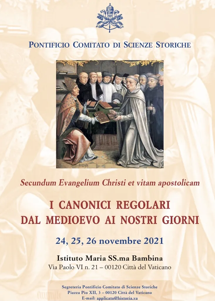 Il Pontificio Comitato di Scienze Storiche promuove un Convegno Internazionale di Studi sul tema "Secundum Evangelium Christi et vitam apostolicam. I Canonici Regolari dal Medioevo ai nostri giorni", che si svolgerà dal 24 al 26 novembre 2021 presso l’Istituto Maria SS.ma Bambina.