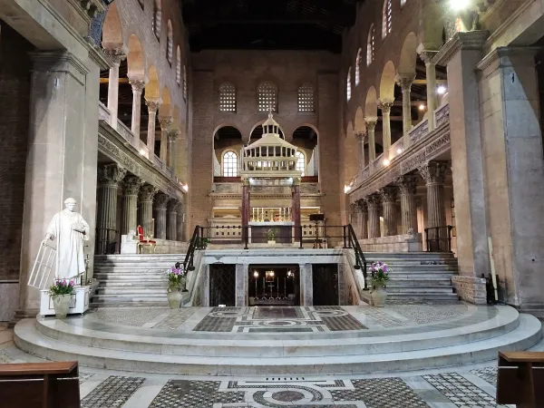 Il Cammino stazionale nella settimana di Pasqua arriva a San Lorenzo fuori le mura sulla via Tiburtina oggi alle 18.30. La Basilica costantiniana come scrive Mariano Armellini: "fu costruita nel seno del cimitero di maniera che il suo pavimento corrispondeva al piano delle inferiori gallerie del medesimo" . Si tratta del cimitero di Roma per antonomasia, il Verano. La basilica è quindi la chiesa del Cimitero. Armellini spiega che " Questo basta per riconoscere la basilica primitiva di Costantino in quella porzione dell'attuale chiesa di s. Lorenzo situata in un livello assai inferiore della rimanent , e precisamente sotto al presbiterio della medesima, la quale è eziandio dissimile dal resto della basilica per la sua la rende molto conforme all'altra basilica S. Agnese. Sisto III, come sappiamo dal Libro pontificale, per concessione di Costantino esercitava sulle basiliche imperiali quasi un' alto giuspatronato 'fecit basilicam b. Laurentio quod et Valentinianus Augustus concessit, ubi et obtulit dona' e quivi volle poi esser sepolto, il che accadde tra gli anni 432, o 440. Ecco adunque, che dopo un secolo dalla sua fondazione, grandiosi restauri furono fatti alla basilica suddetta da Costantino". Commenta Armellini: "I lavori di Sisto, come si vede, non alterarono punto le dimensioni della basilica di Costantino; essi furono semplici restauri. In tali condizioni rimase il luogo fino al secolo vi, cioè ai giorni di Pelagio II, dal 579 al 580".