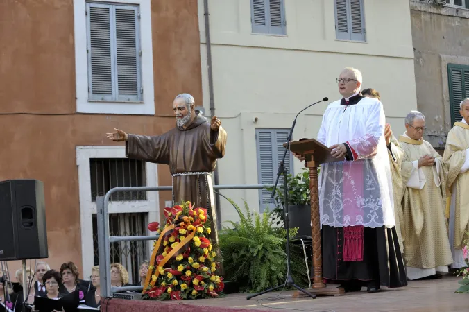 "Ogni giorno siamo chiamati a sentire la voce del Maestro, ad alzare i nostri occhi, a protendere il nostro sguardo e il nostro udito, e camminando insieme a Lui ripetere insieme a Pietro “Tu sei il Cristo di Dio!”. Padre Pio, che tanto amiamo e veneriamo, non è fuggito, ha saputo rimanere dentro il dialogo con il Signore: è rimasto anche quando si manifestavano per lui i segni della Passione".