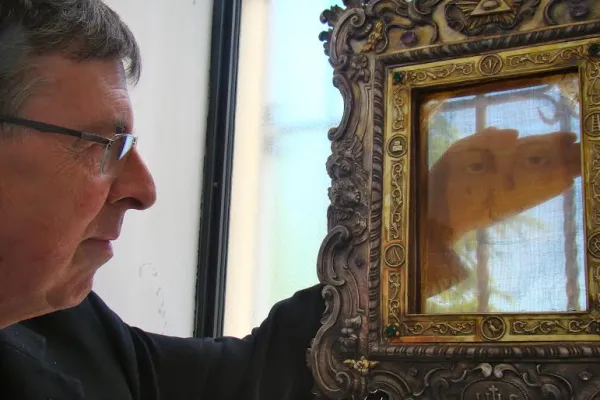 Già dopo il suo arrivo della sera precedente aveva chiamato “Volto della verità” il volto sul velo di bisso marino, che fino al 1527 era stato a lungo venerato a Roma come “Velo della Veronica”. Questa sarebbe stata la sua prima impressione quando ha visto qui di persona per la prima volta l’immagine vivente, che prima aveva conosciuto solo attraverso delle copie che gli erano state regalate. Si era “sentito abbracciato e accolto da questo sguardo pieno di tenerezza in un volto che parla, che è vivo e non incute alcun timore. E’ il Volto della verità”.