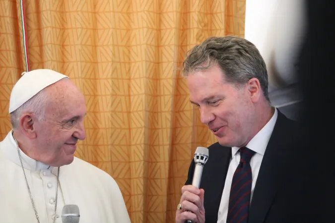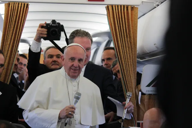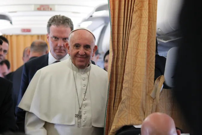 Papa Francesco nella conferenza stampa sul volo Malmoe-Roma | Angela Ambrogetti - Acistampa