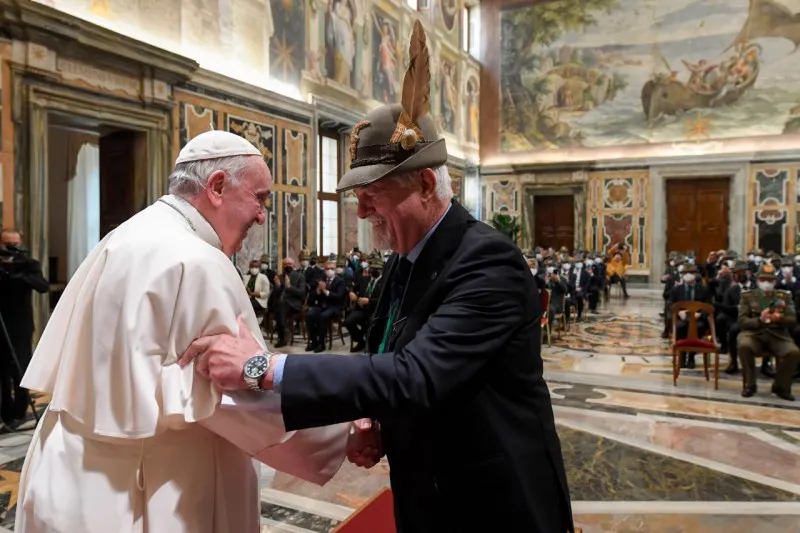 "Saluto gli anziani, memoria vivente di dedizione eroica e di allenamento al sacrificio; saluto i giovani, che proseguono il cammino guardando verso l’alto, con l’andatura tenace e paziente del montanaro che sale i ripidi sentieri per guadagnare la vetta. E, da buoni Alpini, sempre con il cuore e le braccia pronti a sostenere i compagni di cordata e a prendersi cura del creato, nostra casa comune ferita". Con queste parole il Papa accoglie in Udienza i Soci dell’Associazione Nazionale Alpini.
