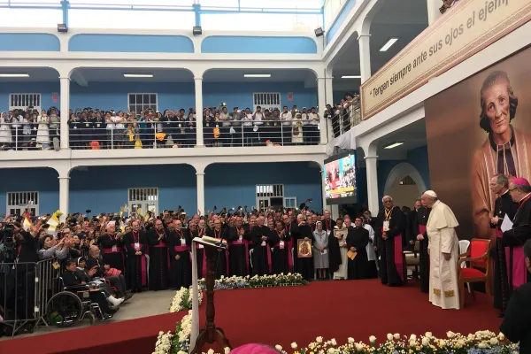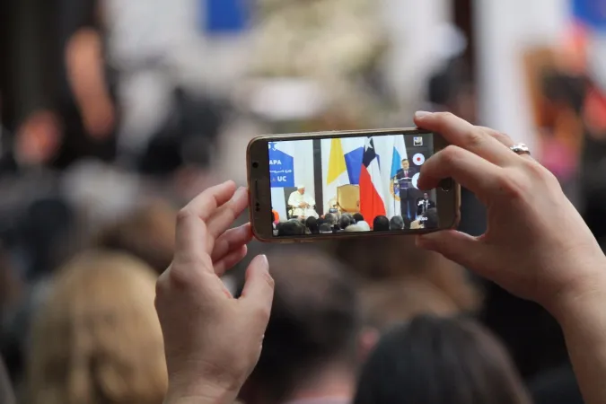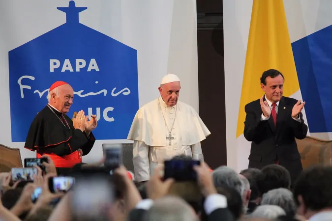 La Pontificia Università Cattolica del Cile a Santiago chiude la giornata di Papa Francesco, accolto da un migliaio di studenti e da 1200 esponenti del mondo accademico cileno.