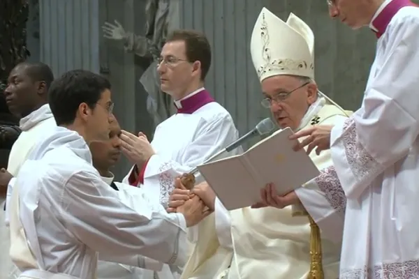 Un pensiero speciale per la misericordia: “All’inizio dell’anno della misericordia ti chiedo- ha detto il Papa- come fratello di essere misericordioso. La Chiesa a il mondo hanno bisogno di tanta misericordia. Tu insegni ai presbiteri e a seminaristi la strada della Misericordia. Con le parole, ma sopratutto con il tuo atteggiamento. La misericordia del Padre che ha sempre posto nel cuore, mai caccia via nessuno, aspetta. Questo ti auguro, tanta misericordia.” Poi il rito della ordinazione con le litanie dei santi, la imposizione delle mani, la consegna dell' anello e del pastorale e del Vangelo e infine un lungo applauso dei presenti che in effetti non hanno potuto vedere molto perchè la ordinazione si è svolta nel presbiterio alle spalle dell' altare.