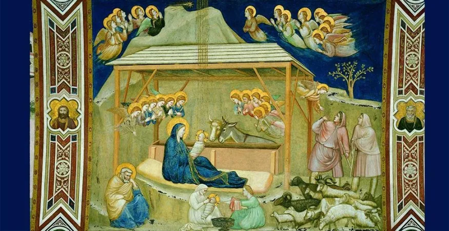 Analizzando la scena affrescata da Giotto sono evidenti due punti topografici: la grotta e il campo dei pastori. Due segni di quotidiana indigenza che diventano il centro della Speranza. E sono queste periferie che il Papa vorrebbe affrescare affinché l’uomo si possa accorgere di Dio attraverso i gesti semplici della vita quotidiana. E’ Natale. Dio è con noi.