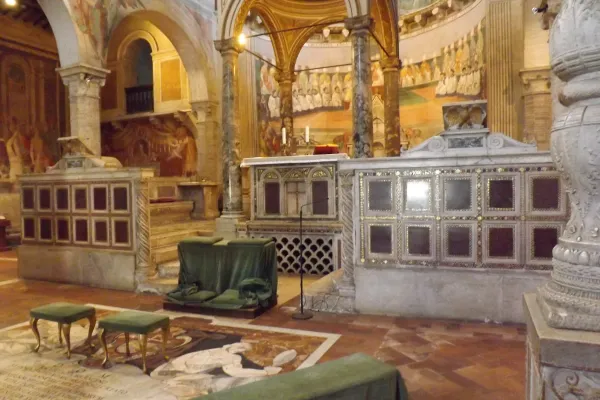 Ma la chiesa dei Santi Nereo ed Achilleo conserva anche un altro ricordo della Chiesa più antica. Custodisce la memoria di una prima chiesa che veniva chiamata “la parrocchia della benda”, in latino titulus Fasciolae. Si tratta di un dettaglio curioso della leggenda di San Pietro, nel famoso episodio del “Domine Quo Vadis”, quando Pietro, uscito miracolosamente dal carcere fugge da Roma e incontra il Cristo Risorto sulla Via Appia.