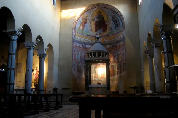 Il martedì della Settimana Santa si celebra la stazione quaresimale a Santa Prisca sull’Aventino, una chiesa paleocristiana che però vediamo oggi dopo un rifacimento barocco nel Seicento e un altro nell’Ottocento.