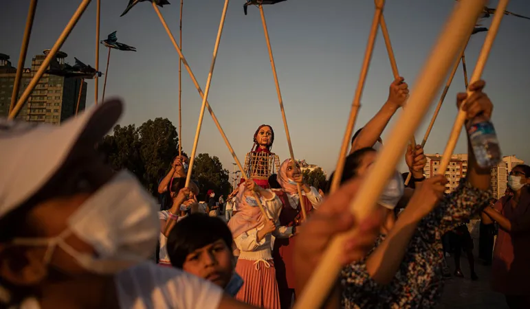 La piccola Amal è un burattino alto 3,5 metri che raffigura una giovane rifugiata di circa 9 anni, e che rappresenta idealmente tutti i bambini sfollati, molti dei quali separati dai loro genitori. Percorrerà oltre 8.000 km in cerca della sua famiglia per incarnare il monito: “Non dimenticatevi di noi”.