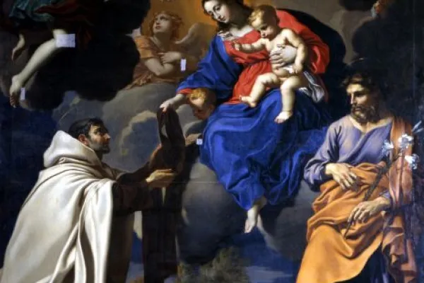 “Mentre io effondevo l’anima mia nel cospetto del Signore, sebbene altro non sia che polvere e cenere, e con tutta fiducia pregavo Maria Vergine mia Signora (...) mi apparve essa con gran corteggio, e tenendo l’Abito dell’Ordine, disse: Prendi, amatissimo figlio, questo Scapolare; questo sarà il segno dell’Ordine tuo e della mia Congregazione e del privilegio che io ho ottenuto per te e per tutti i Carmelitani, col quale chiunque piamente morrà, non soffrirà l’eterno incendio. E’ questo un segno di salute, salvezza nei pericoli, pegno di pace e di alleanza eterna”. Questo il racconto, in prima persona di San Simone Stock, dell’apparizione della Madonna avuta il 16 luglio 1251. Proprio da questa data dell’apparizione è nata la festa che si celebra ogni 16 luglio. La stessa festa divenne successivamente, nel 1600, la festa dell’intero Ordine Carmelitano e fu popolarmente conosciuta come la festa dello Scapolare.