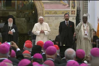 Un discordia che viene dall’assenza di Dio. Ecco che Giovanni Paolo II e il suo “spirito di Assisi” si trovano compimento nelle parole del suo successore: “chiamano in causa anche gli aderenti alle religioni, perché non considerino Dio come una proprietà che appartiene a loro così da sentirsi autorizzati alla violenza nei confronti degli altri. Queste persone cercano la verità, cercano il vero Dio, la cui immagine nelle religioni, a causa del modo nel quale non di rado sono praticate, è non raramente nascosta. Che essi non riescano a trovare Dio dipende anche dai credenti con la loro immagine ridotta o anche travisata di Dio. Così la loro lotta interiore e il loro interrogarsi è anche un richiamo a noi credenti, a tutti i credenti a purificare la propria fede, affinché Dio – il vero Dio – diventi accessibile”.