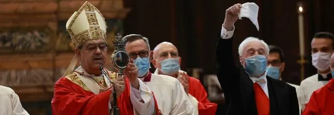 Posti contingentati in cattedrale, con sole 200 persone tra celebranti, autorità e tradizionale deputazione di San Gennaro, e senza le preghiere e i canti dei fedeli, da sempre tratto caratteristico della celebrazione.