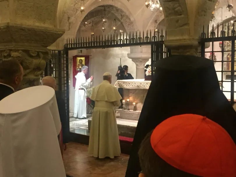 Il Papa arriva, e saluta i Patriarchi uno ad uno. Poi, si muove all’interno della Basilica insieme a loro, per scendere nella cripta dove sono custodite le spoglie di San Nicola.
