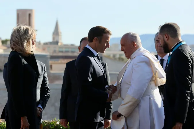 Al termine del discorso il Papa incontra Emmanuel Macron, Presidente della Repubblica Francese.