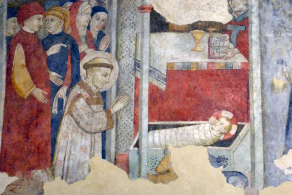 È il primo presepe della storia. Oggi, il cuore del “Santuario del Presepe” è costituito dalla grotta in cui fu realizzato l’evento, dove fu costruita una cappella e, sul masso che servì da mangiatoia, un piccolo altare. Sul fondo della cappella, sopra l’altare, c’è un affresco del 1400 di scuola Giottesca attribuito al Maestro di Narni del 1409 che rappresenta, a destra, la Natività di Betlemme e, a sinistra, il Presepe di Greccio.