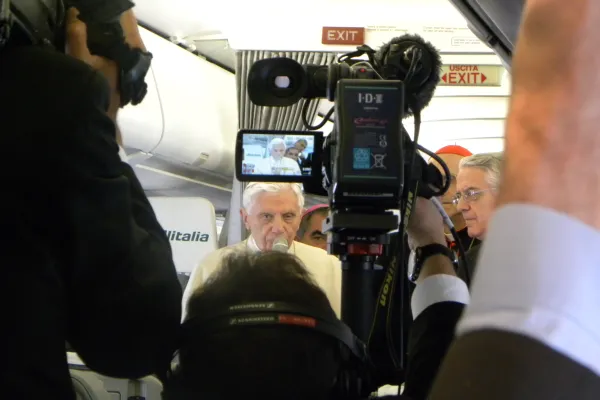 Il Papa con i giornalisti sul volo per Roma |  | Courtney Grogan CNA Il Papa con i giornalisti sul volo per Roma | | Courtney Grogan CNA