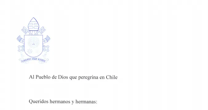 Lettera di Papa Francesco  | L'intestazione della lettera che Papa Francesco ha inviato al Popolo di Dio del Cile | CEC Lettera di Papa Francesco | L'intestazione della lettera che Papa Francesco ha inviato al Popolo di Dio del Cile | CEC