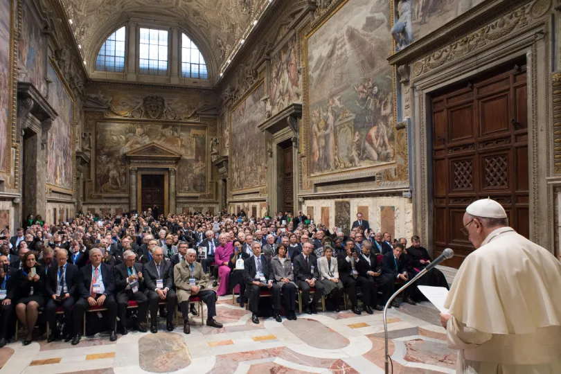 “Vorrei riflettere con voi oggi su tre rischi: il rischio di usare bene il denaro, il rischio dell’onestà e il rischio della fraternità”, dice il Papa ai presenti.