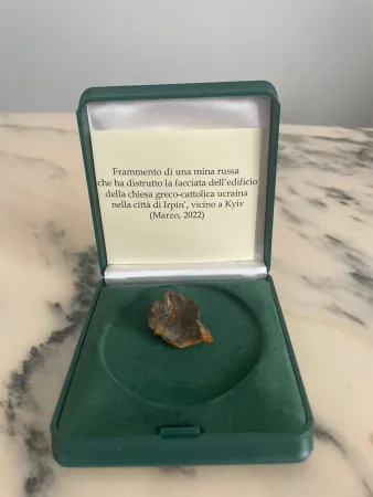 Incontrando Papa Francesco dopo otto mesi passati a fianco della popolazione sotto attacco, Sua Beatitudine Sviatoslav Shevchuk, capo della Chiesa Greco Cattolica Ucraina, ha portato un dono simbolico e sostanziale: il frammento di una mina russa che ha distrutto la facciata dell’edificio della chiesa greco cattolica nella città di Irpin’, vicino Kyiv, nel mese di marzo.