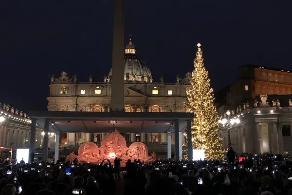 Alle 16.30 una cerimonia di inaugurazione ha illuminato l’albero e inaugurato il presepe di Natale in Piazza San Pietro. Un’intensa atmosfera natalizia ha caratterizzato l’evento: musiche dalla Banda Musicale del Corpo della Gendarmeria in formazione da parata con la “Marcia all’antica”, Marcia d’Ordinanza della Gendarmeria; l’intermezzo Musicale “In Notte Placida”, accensione dell’Albero di Natale mentre viene eseguito il canto ‘Lauda dell’Epifania’, “Tu scendi dalle stelle” e tante altre.