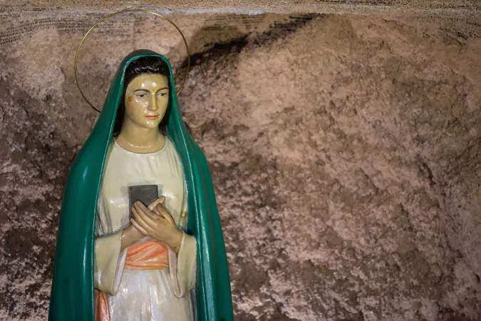 Poi la prima apparizione, mentre cerca i figli che giocano lì nel parco delle Tre Fontane. Li trova in una grotta davanti alla Bella Signora. Da quel momento l’uomo che voleva uccidere il Papa cambia radicalmente la sua vita, fino nel 1949 a consegnare a Pio XII il pugnale con il quale voleva ucciderlo.
