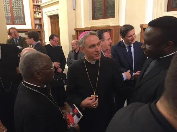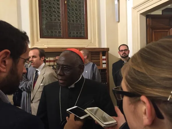 Ieri sera a Roma, nel complesso di Santa Maria dell’Anima, è stato presentato il libro del Cardinale Robert Sarah “Dio o niente”. Sono intervenuti il Cardinale George Pell, Prefetto della Segreteria per l’Economia, Monsignor Georg Ganswein, Prefetto della Casa Pontificia, e Monsignor Rino Fisichella, Presidente del Pontificio Consiglio per la Promozione della Nuova Evangelizzazione. Prima di iniziare la conferenza, il Cardinale Sarah – Prefetto della Congregazione per il Culto Divino e la Disciplina dei Sacramenti – si è intrattenuto per rispondere alle domande di Acistampa.