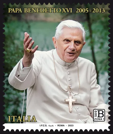Presentato ieri a Roma presso il Ministero delle Imprese e del Made in Italy il francobollo commemorativo dedicato a Papa Benedetto XVI, morto il 31 dicembre 2022 all’età di 95 anni.