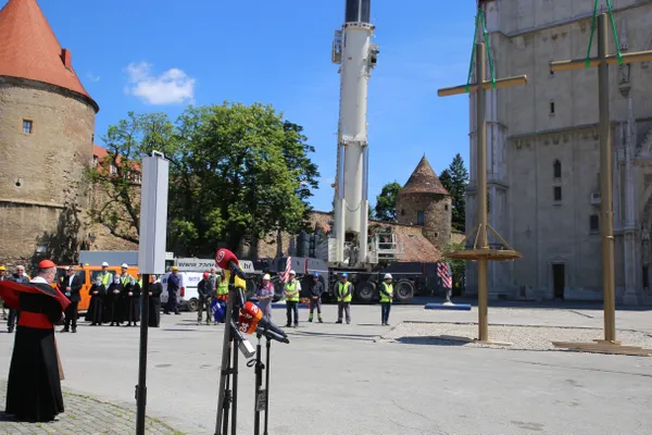 La croce ha una sua storia. Era stata restaurata e posta di nuovo in cima alla torre nella Pasqua 2013. Era alta 2,55 metri, larga 1,44 metri e pesa circa 600 chili. Era stata realizzata nel laboratorio Maruzzi di Zagabria il 10 agosto 1898, e ridorata nell’1 dicembre 1939.