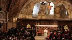 "Di fronte a Gesù crocifisso risuonano anche per noi le sue parole: "Ho sete". Da questo concetto parte l'intera meditazione del Papa nella Basilica Inferiore di San Francesco ad Assisi per il momento della preghiera Ecumenica, durante la quale vengono nominati tutti i Paesi in guerra e per ciascuno di essi viene accesa una candela. La sete come "bisogno estremo dell'uomo, ma anche come la sua estrema miseria".