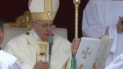 Prima di concludere la celebrazione in cui ha canonizzato sette Beati, Papa Francesco ha recitato l’Angelus domenicale sul sagrato della Basilica Vaticana.