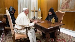 L’incontro tra Papa Francesco e il Catholicos Karekin II arriva al culmine di un viaggio che il capo della Chiesa Apostolica Armena ha fatto in Italia, passando prima da Milano per festeggiare i 60 anni di presenza armena nella città. L’incontro con Papa Francesco va a rinsaldare il legame di amicizia tra Chiesa Cattolica e Chiesa Apostolica Armena.