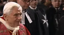14 marzo 2010. Papa Benedetto XVI entra e predica nella Chiesa Evangelica Luterana di Roma. Un evento che domani si ripeterà con la visita del suo successore, Papa Francesco.